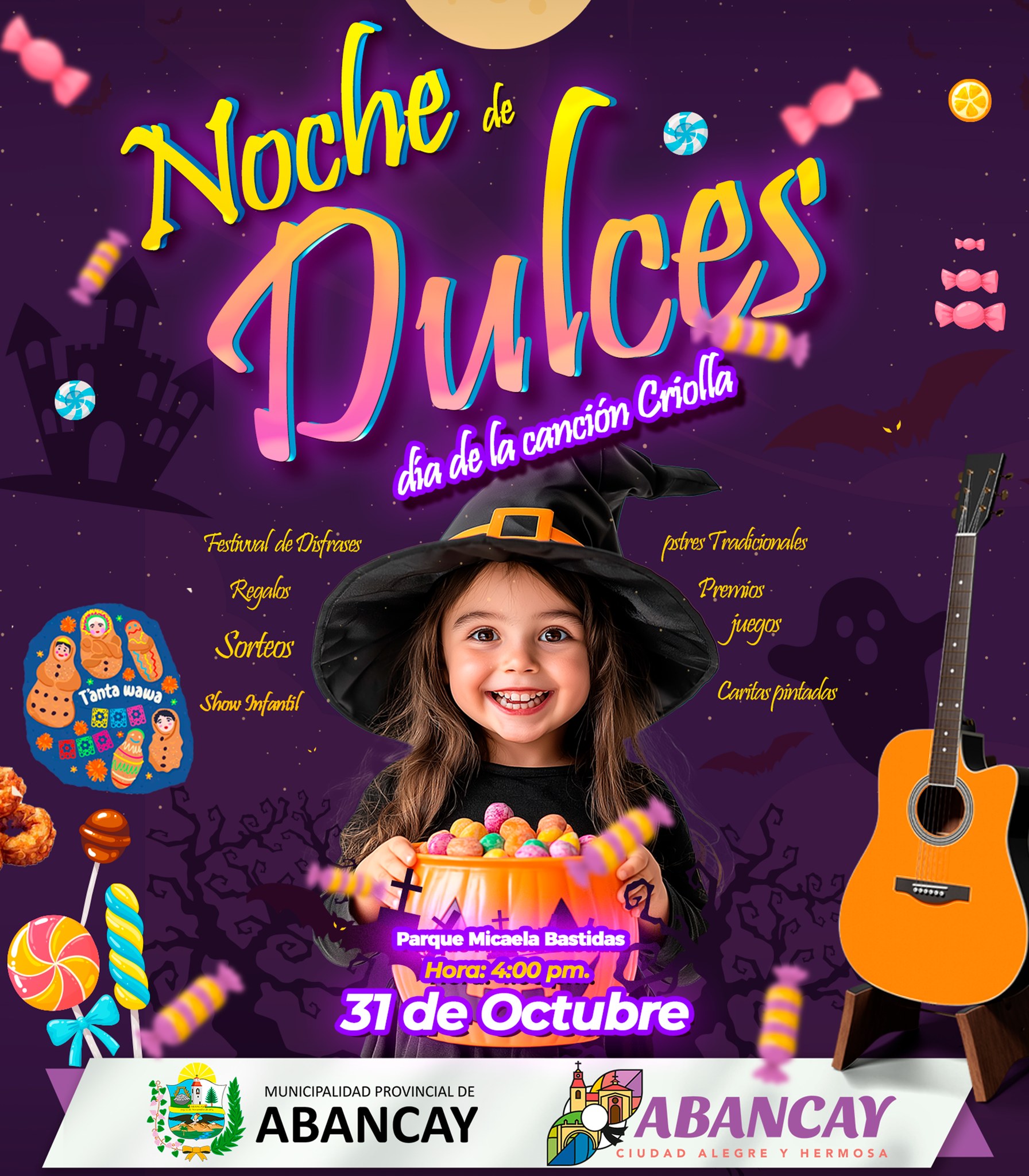 Este 31 de octubre, vive una experiencia única llena de luces, música y mucho sabor…Por primera vez en Abancay “Noche de Dulces”